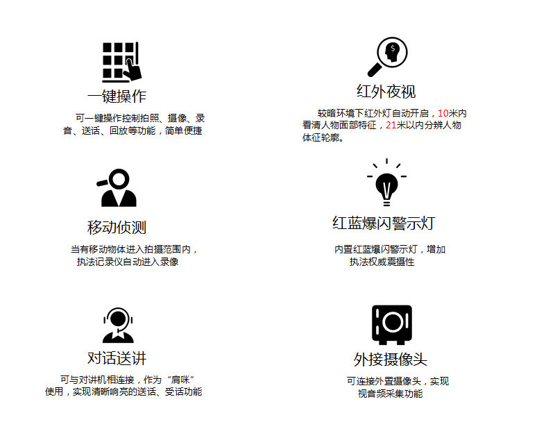 yl23411永利 yl23411DSJ-200F 执法仪(法院/政府/城管)拍摄像素高达5000万,广角镜头137,拍摄画面精细而全面,大容量电池支持陆续在工作12小时不断电